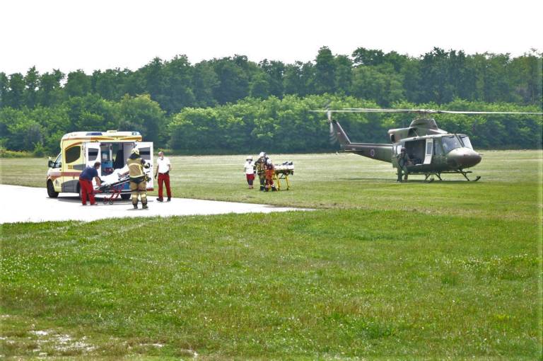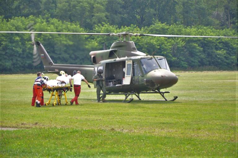 Reševalci nujne medicinske pomoči so na Letališče Murska Sobota prepeljali starejšega moškega, kjer jih je čakal helikopter Slovenske vojske.
