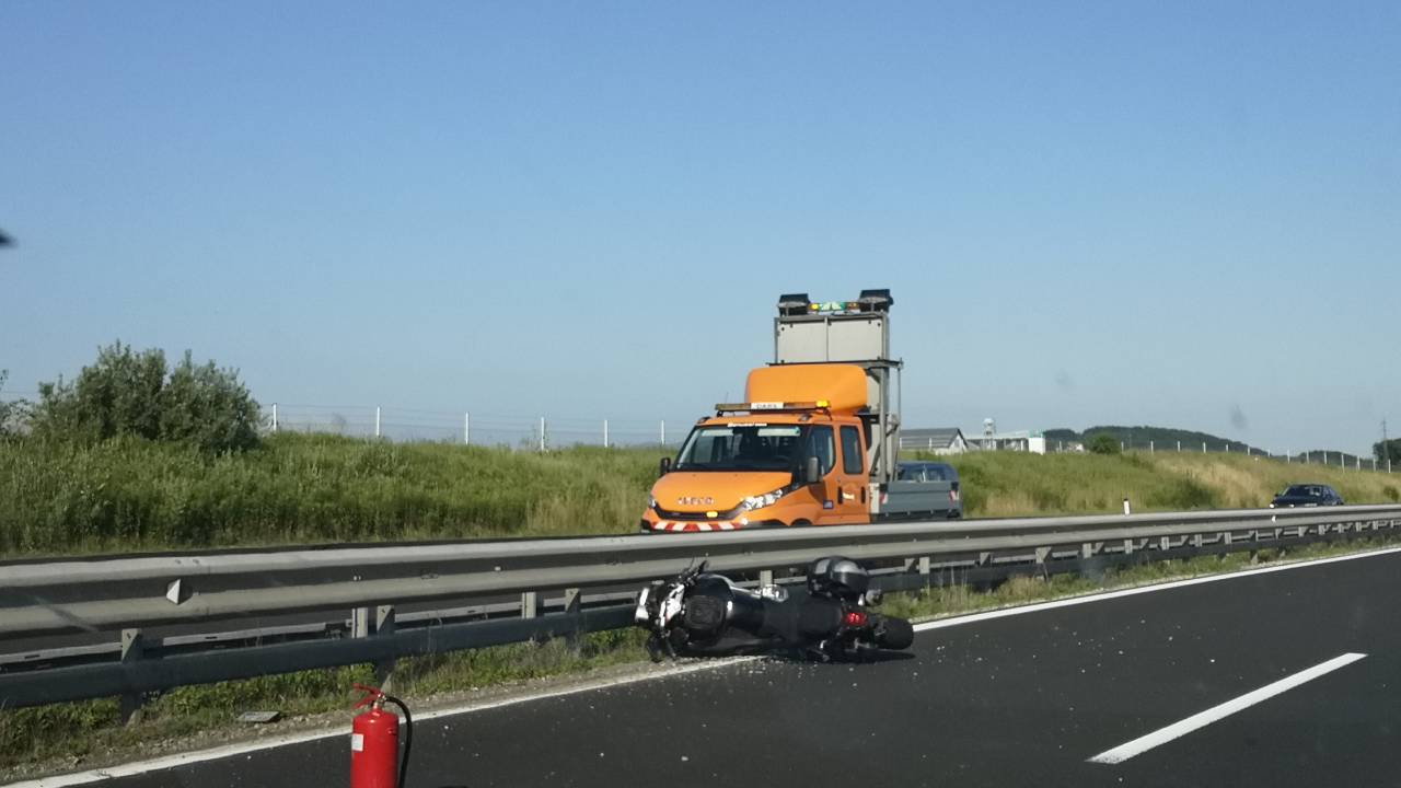 Na pomurski avtocesti je prišlo do prometne nesreče, v kateri sta udeležena motorno kolo in tovorno vozilo.