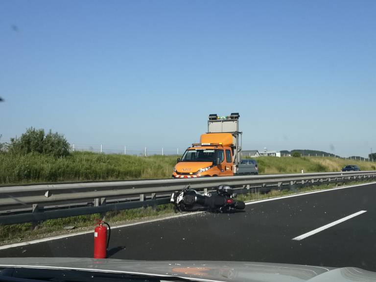 Na pomurski avtocesti je iz smeri Maribora proti Murski Soboti, po počivališču Lomarje, prišlo do prometne nesreče, v kateri sta udeležena motorno kolo in tovorno vozilo.