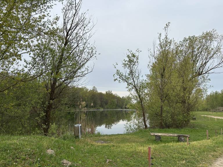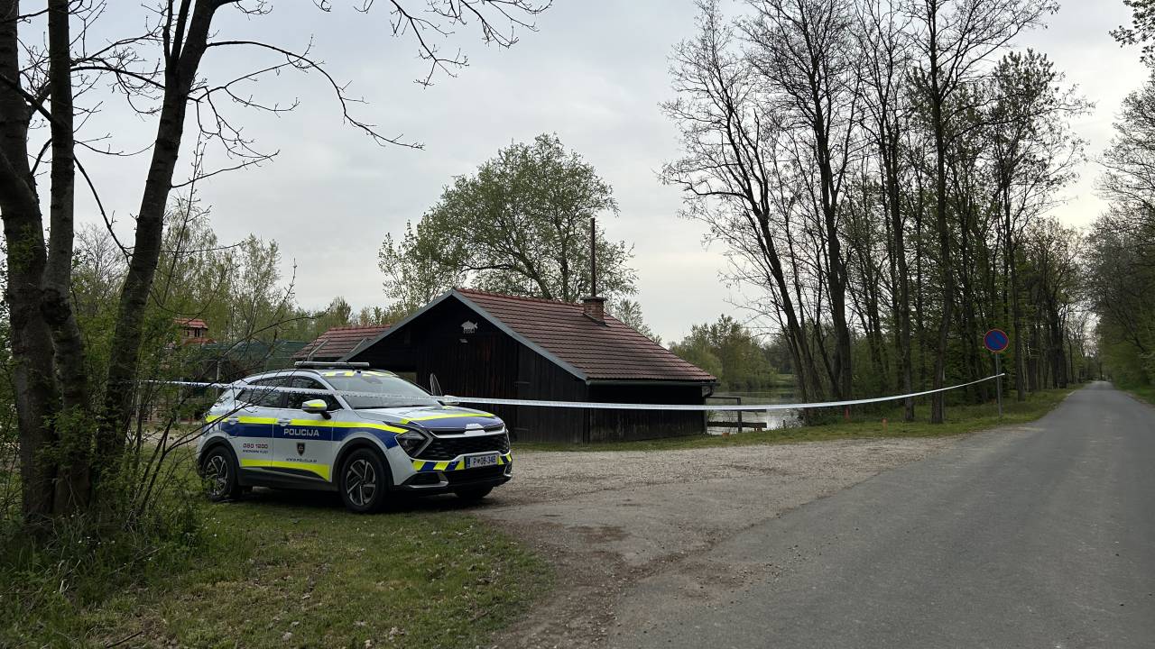 Po informacijah s terena sta na kraju policistka in policist, ki se nahajata v vozilu. Trak je nameščen pri uvozu do gramoznice in ribiške hiške, kar kaže na omejen dostop do območja.
