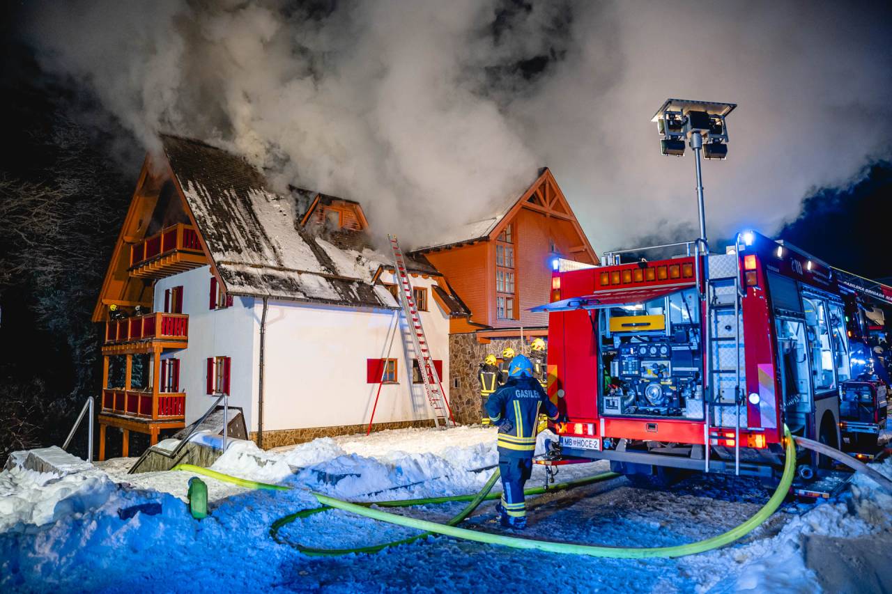 Po tem, ko je zagorelo v enem izmed apartmajev na Mariborskem Pohorju, je gasilcem uspelo omejiti požar in ga že skoraj pogasiti.