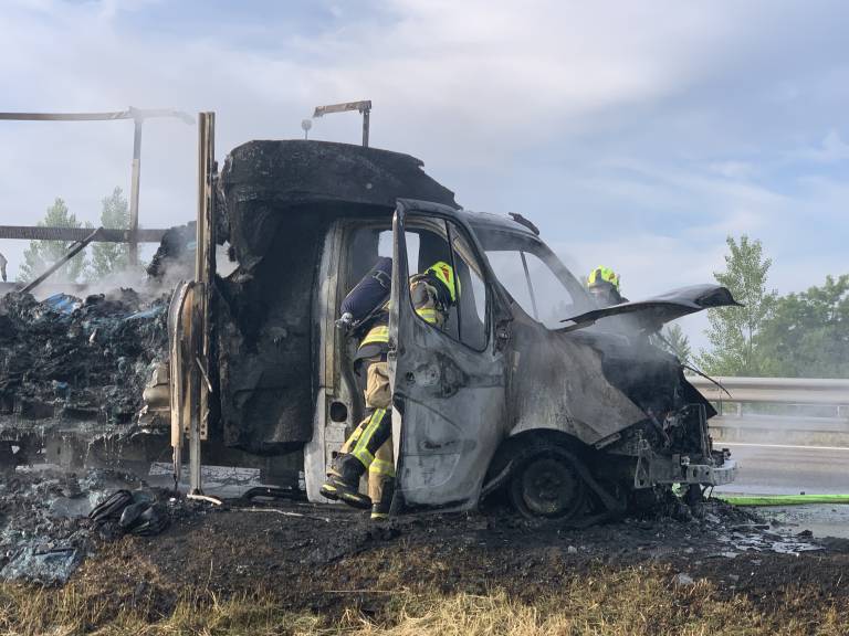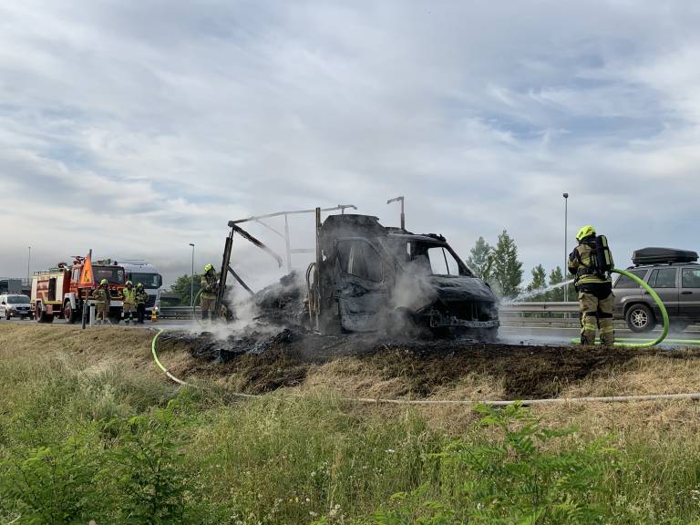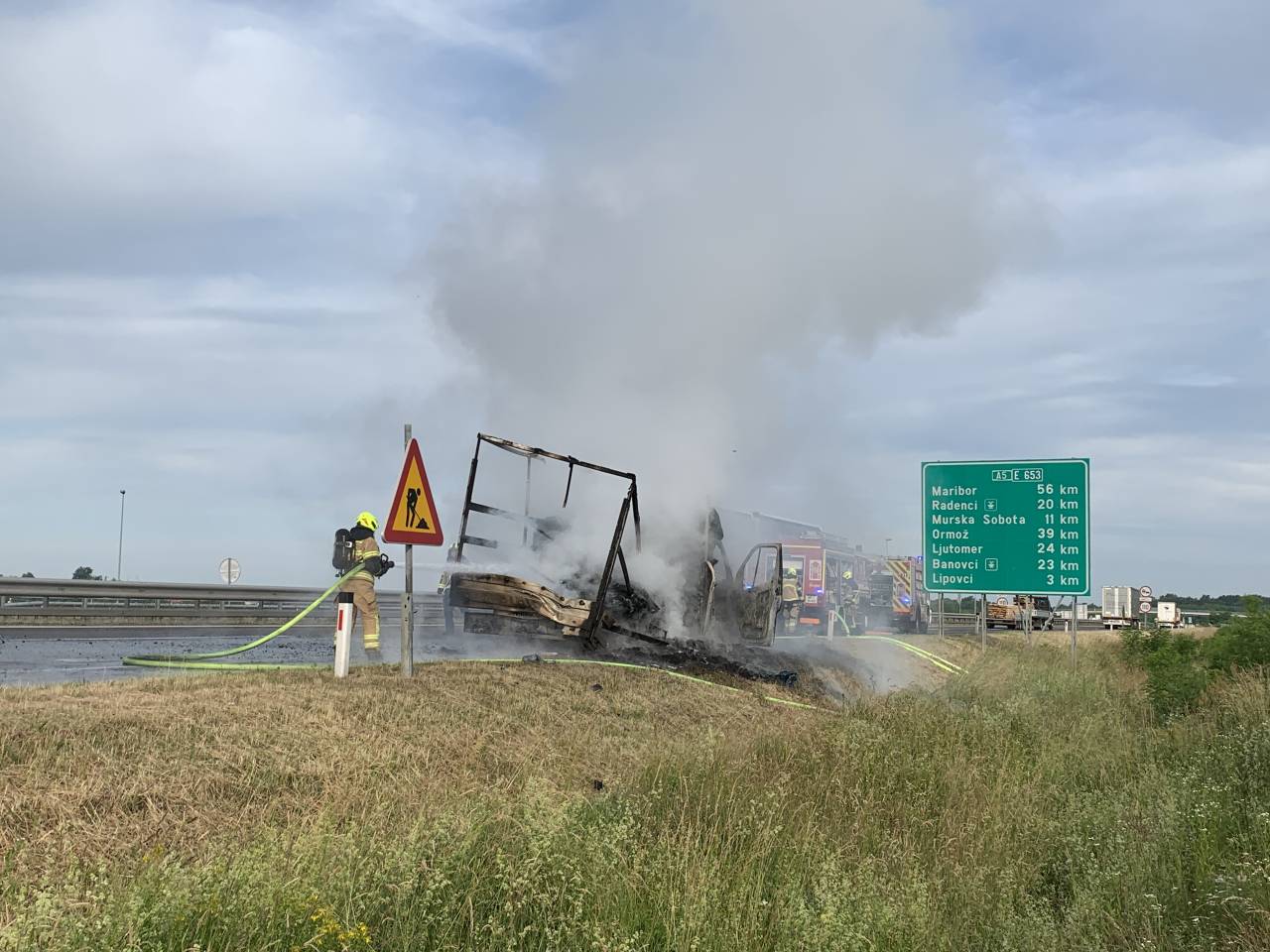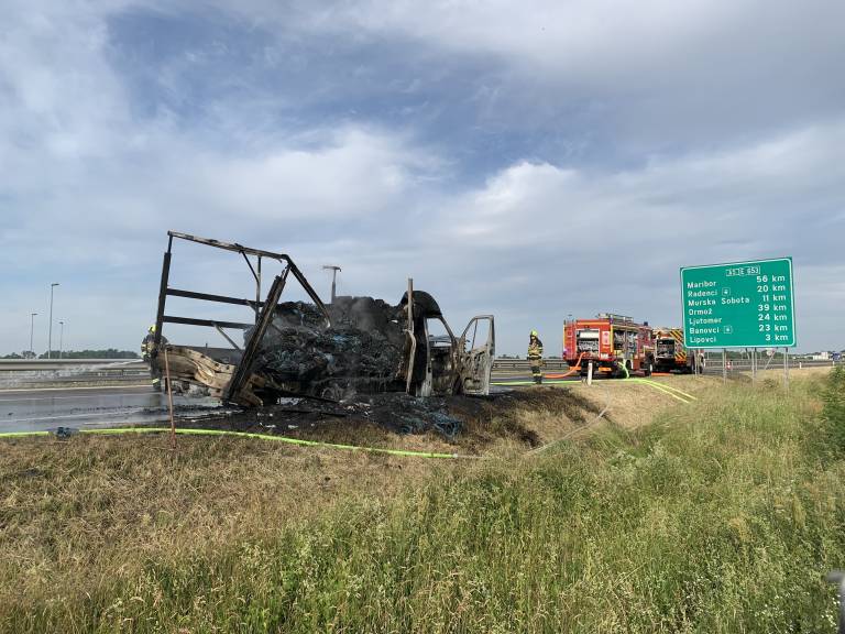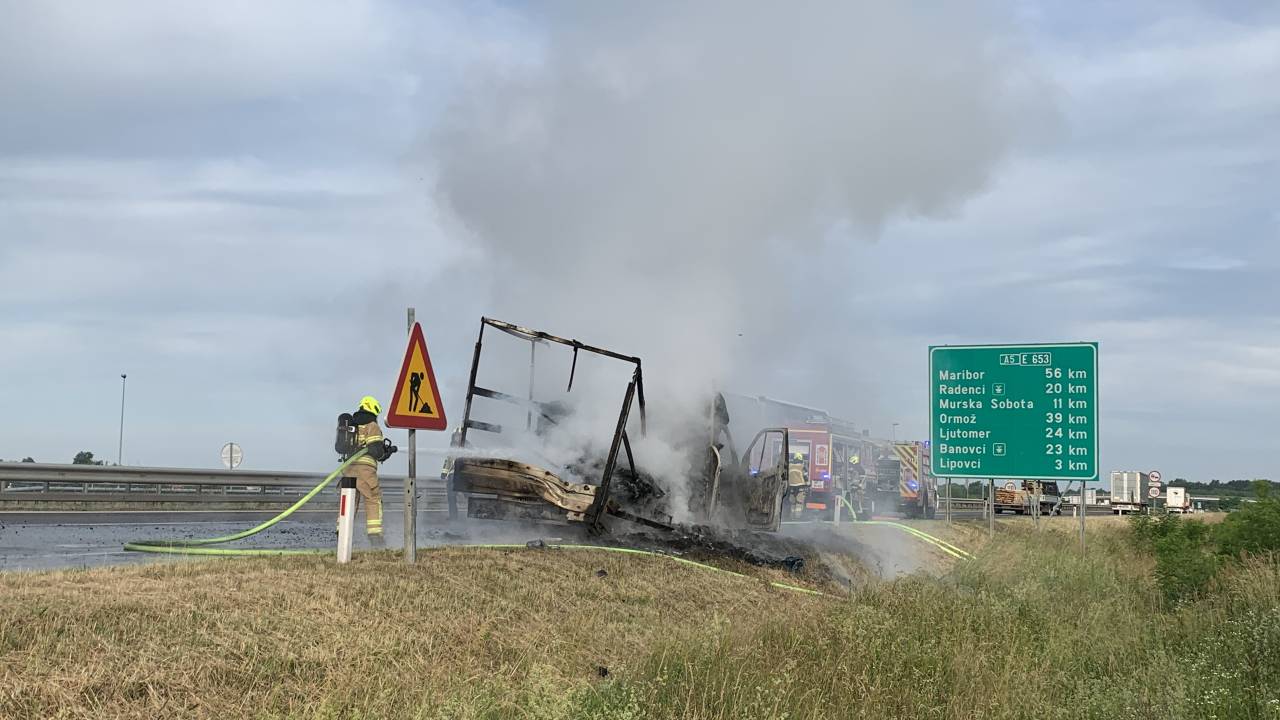Iz Uprave Republike Slovenije za zaščito in reševanje je ob 6.49 na avtocesti Gančani - Lipovci v Beltincih zagorelo manjše tovorno vozilo.