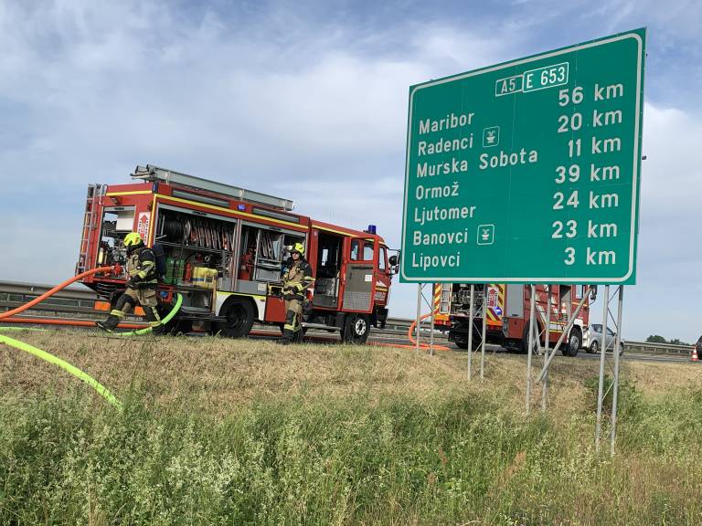 Vozilo je zagorelo pred priključkom Lipovci proti Murski Soboti.
