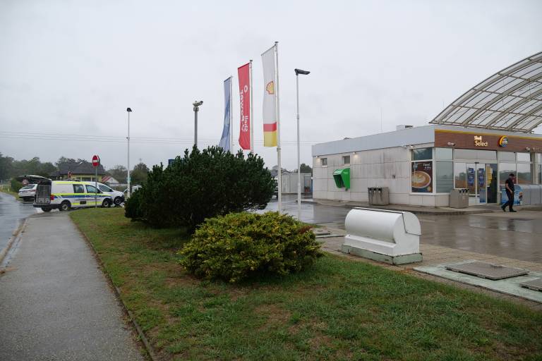 Neznani storilci so ponoči v Gederovcih razstrelili bankomat, na kraju so policisti in kriminalisti, ki opravljajo ogled kraja zločina.
