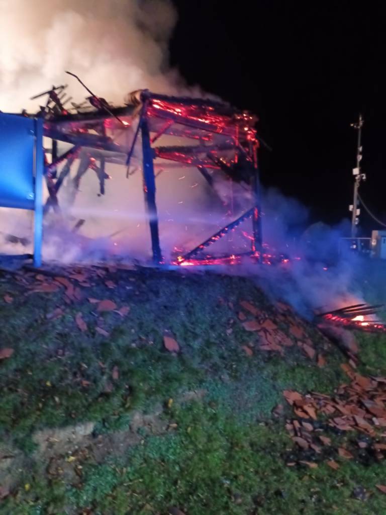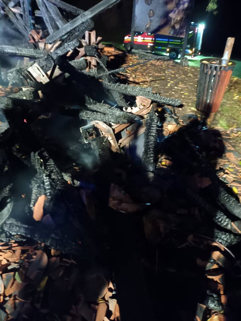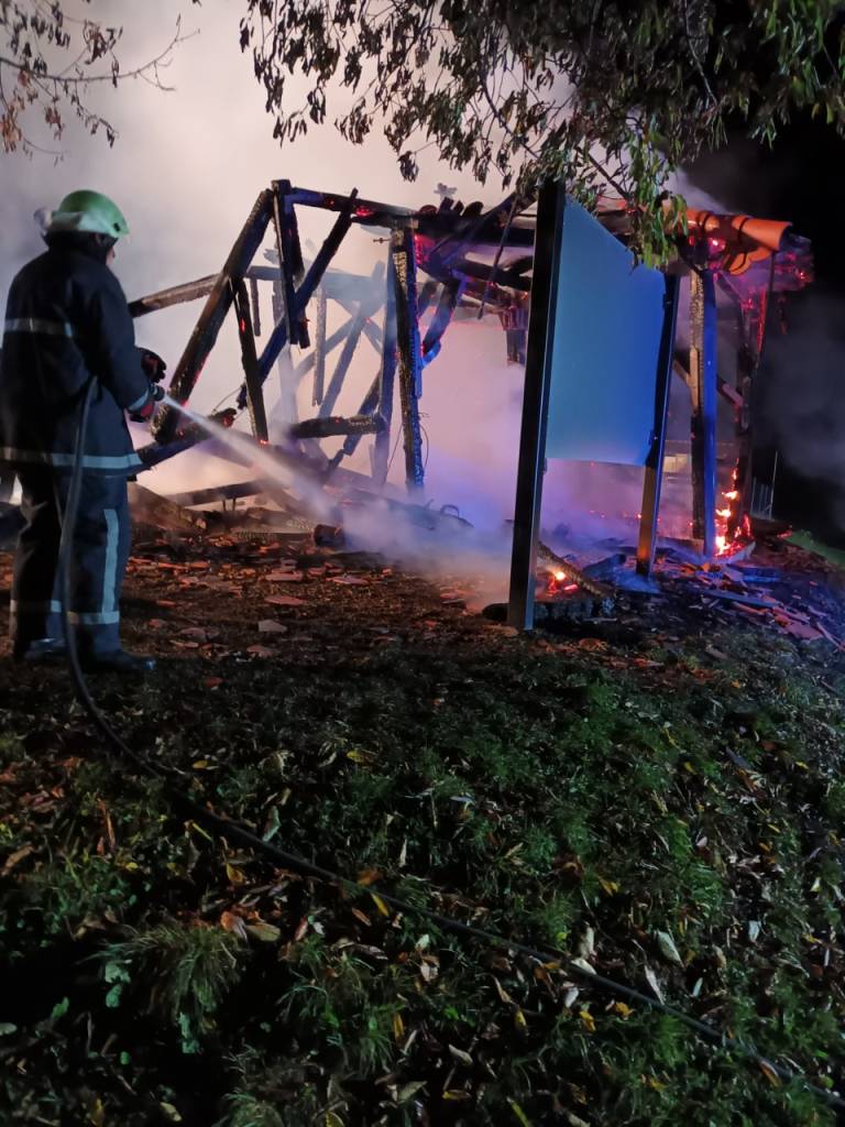 Poleg razglednega stolpa, ki je pogorel v celoti, je zgorel še koš za smeti in reklamni pano, poroča Uprava Republike Slovenije za zaščito in reševanje.