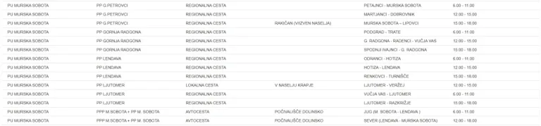 Meritve danes izvajajo tudi na 14 lokacijah Policijske uprave Murska Sobota, v aktivnosti pa je čez celoten dan vključenih osem policijskih patrulj.