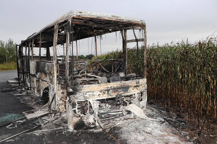 V tretjem primeru so isti osumljenci pristopili do parkiranega avtobusa v Hočah, ga spravili v pogon ter odpeljali do nekaj kilometrov oddaljene separacije, kjer so na avtobusu zanetili požar, pri čemer je avtobus v celoti pogorel.