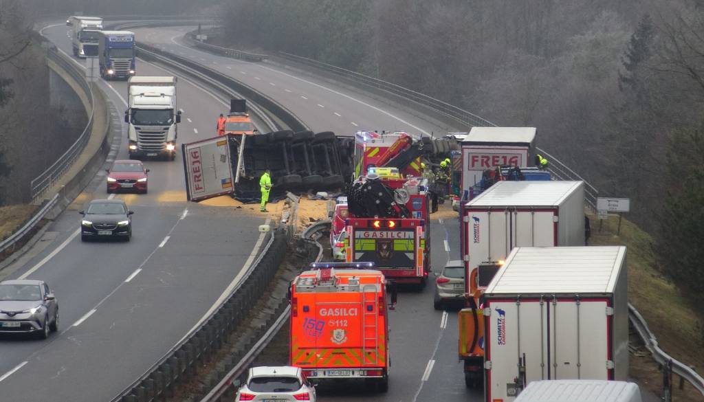 Policijska uprava Murska Sobota je zdaj potrdila, da so bili policisti danes, ob 9.10, obveščeni, da se je na pomurski avtocesti, malo naprej od Vučje vasi v smeri Maribora prevrnilo tovorno vozilo tujih registrskih oznak, ki je prebilo tudi zaščitno ograjo.