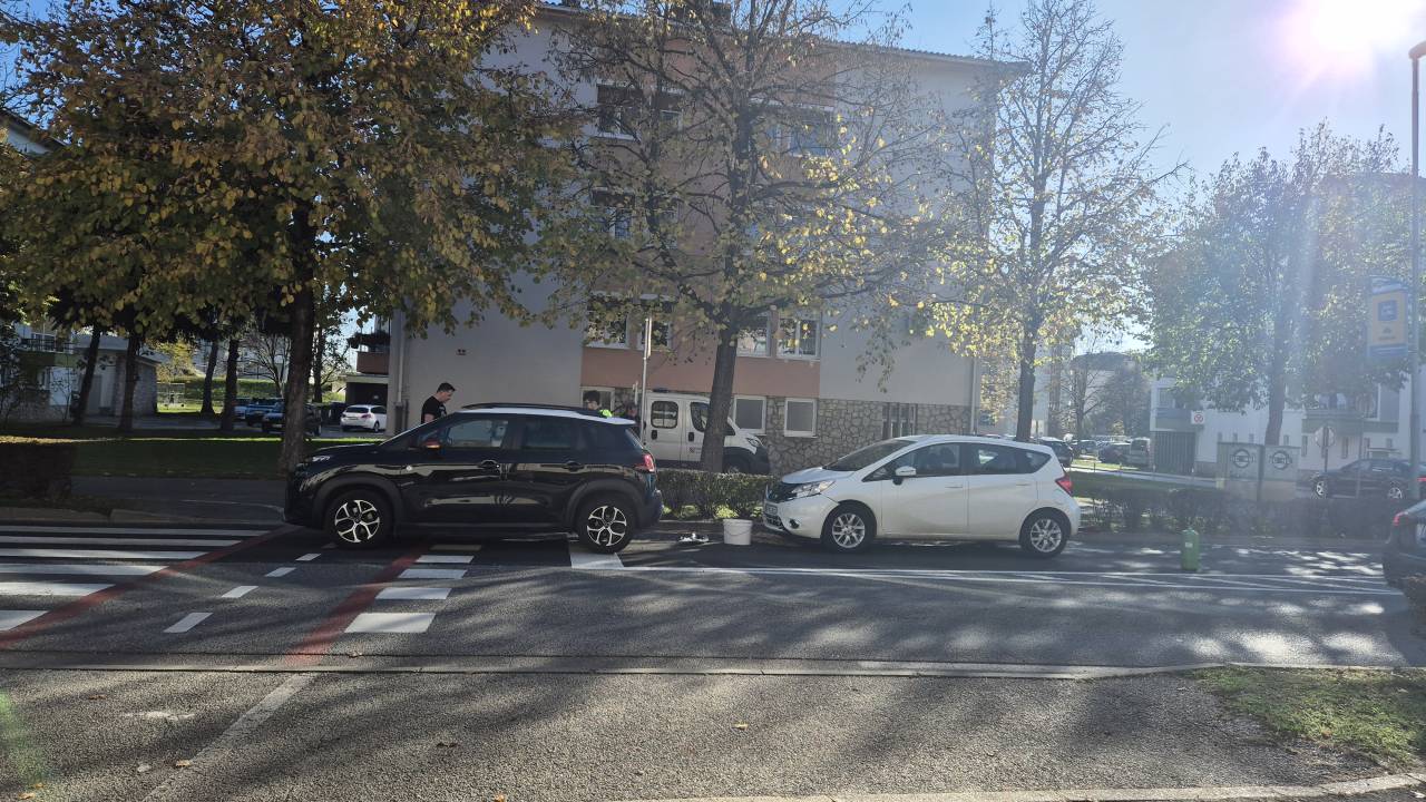 Kot vse kaže, je voznik belega osebnega avtomobila, znamke Nissan, trčil v zadnji del črne Dacie.