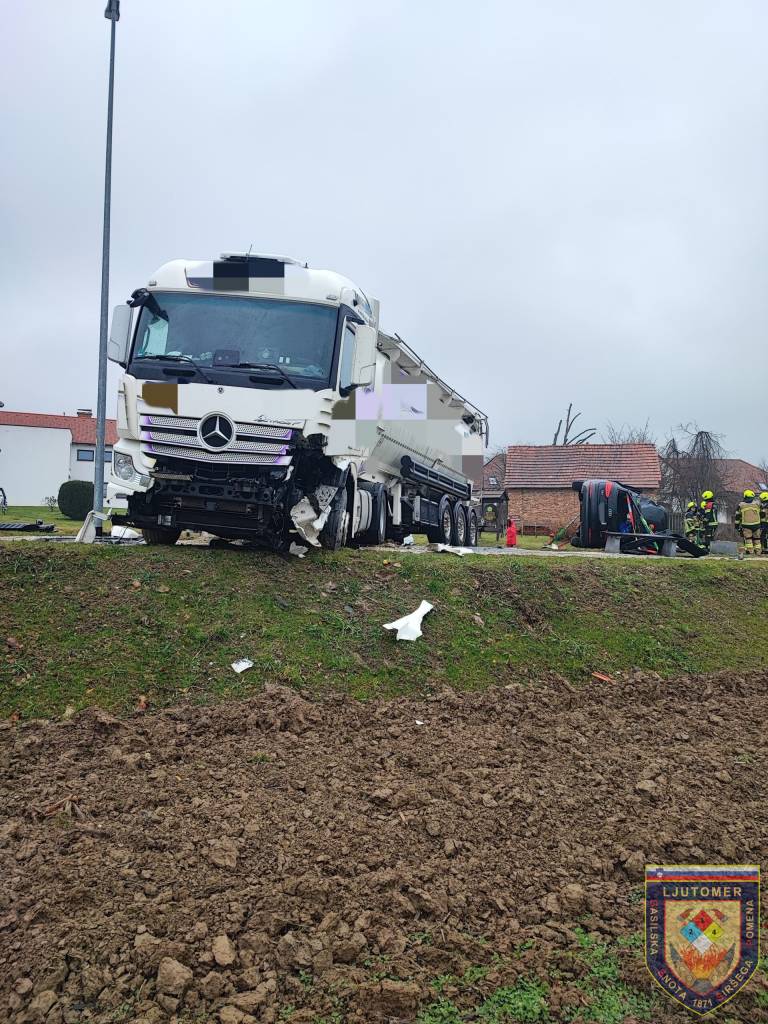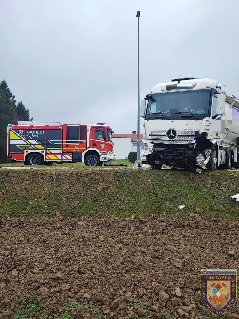 V Radomerju, na cesti med Ljutomerom in Žerovinci, je danes, nekaj pred 14. uro, prišlo do prometne nesreče, v kateri sta bili udeleženi tovorno in osebno vozilo.