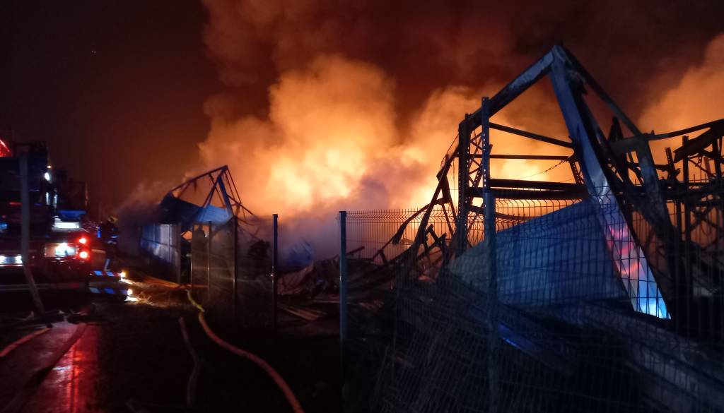V soboto zvečer je v coni Tezno zagorelo. Gasijo poklicni gasilci in vsa prostovoljna gasilska društva.