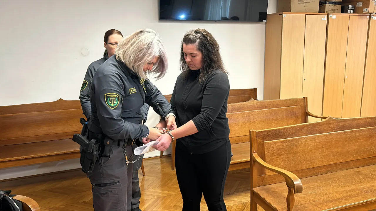 Obdolženo so vklenjeno na sodišče pripeljali pravosodni policisti, njen prihod pa so spremljali vzkliki »morilka« znancev umorjene.
