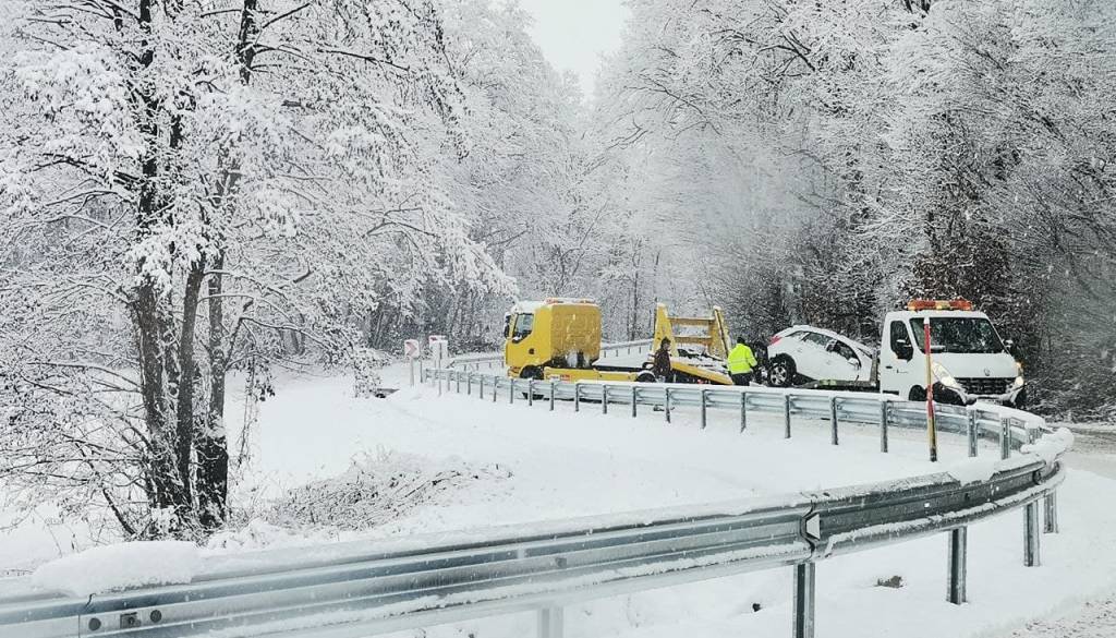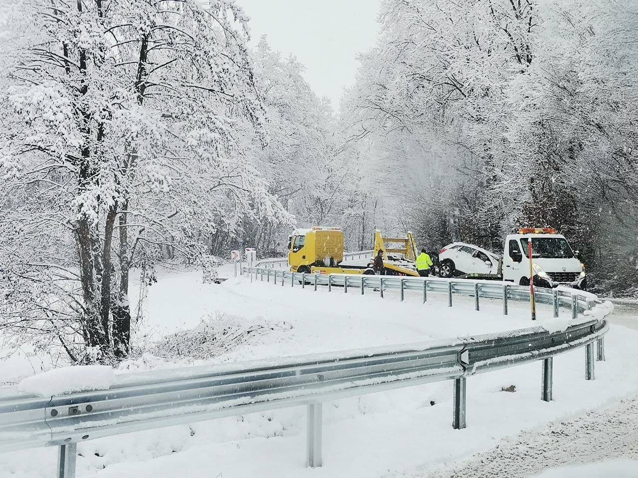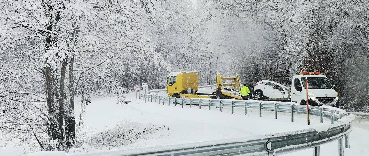 V jutranjih urah je v Pomurju zaradi močnega sneženja prišlo do več prometnih nesreč.