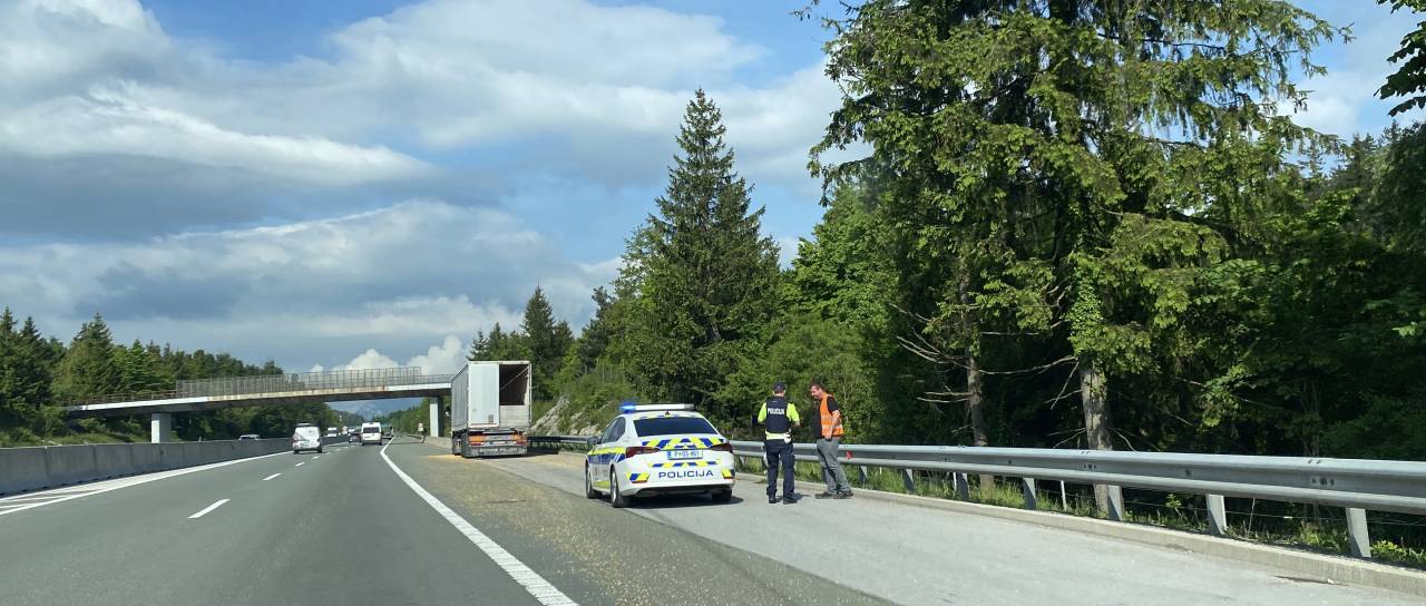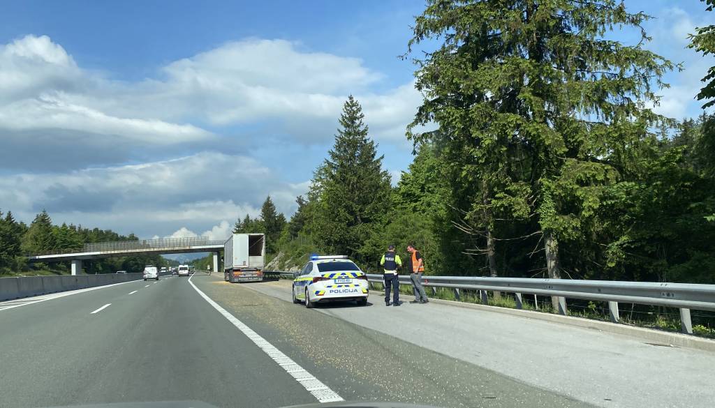Na primorski avtocesti med Uncem in Ravbarkomando v smeri proti Kopru je po vozišču stresena koruza.
