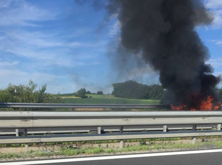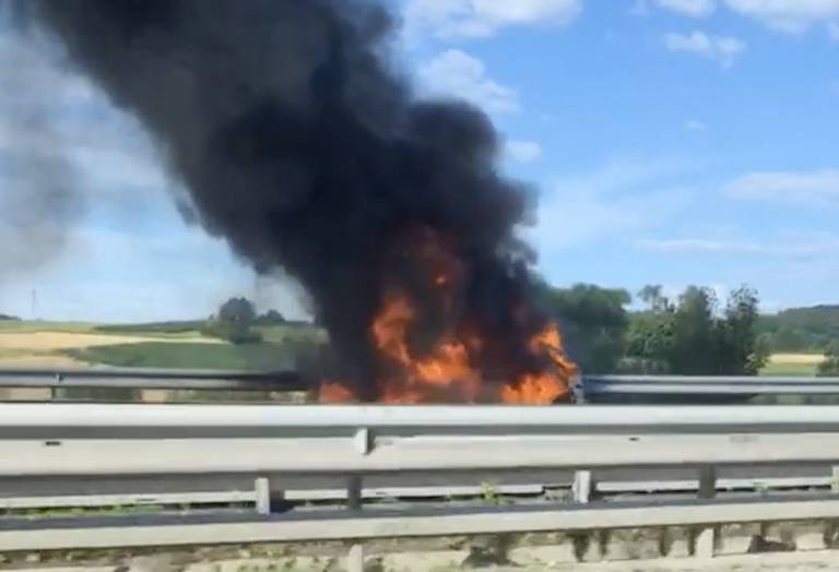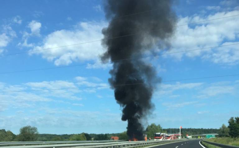 Na pomurski avtocesti pred počivališčem Lormanje, v smeri Murska Sobota je gorelo osebno vozilo, ki je imelo pripeto prikolico.