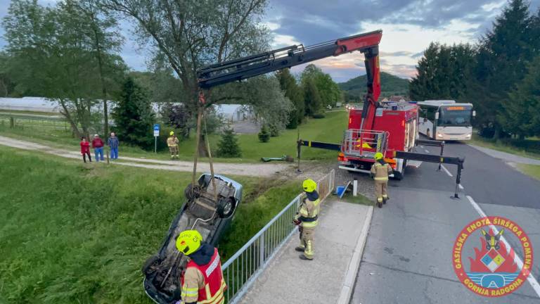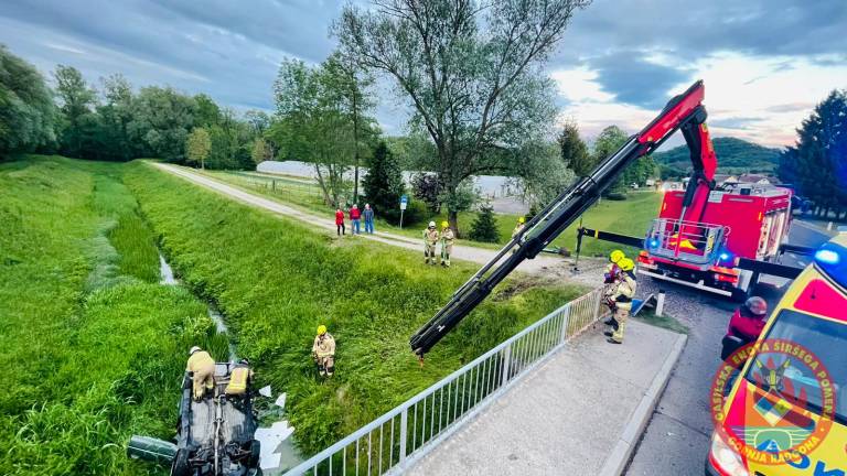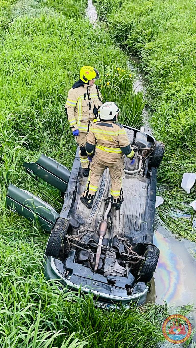 Na cesti Podgrad–Lutverci, občina Apače, je včeraj ob 19.49 osebno vozilo zapeljalo s ceste in pristalo na strehi v potoku.