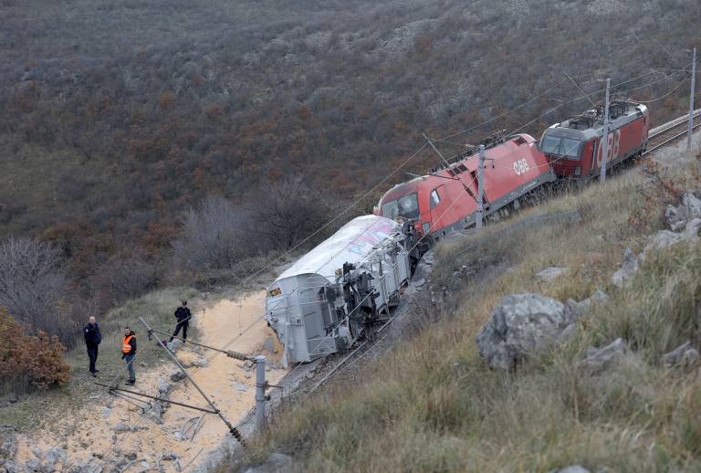 Nekaj pred 9. uro je na tirih med hrvaškima železniškima postajama Meja in Škrljevo v bližini Reke v vzdrževalni vlak trčil tovorni vlak z 19 vagoni, polnimi koruze.