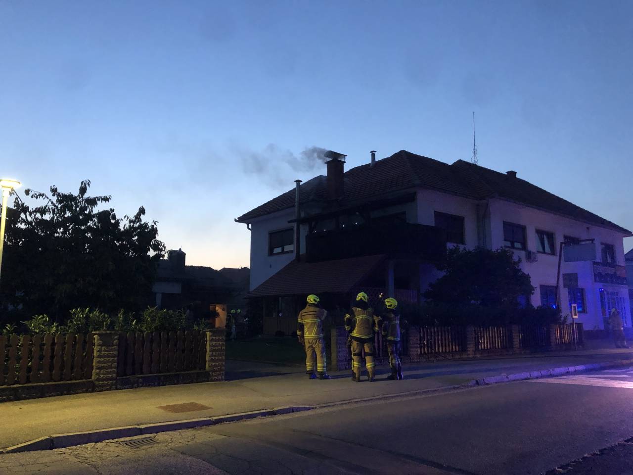 Gre za Ulico Štefana Kovača. Na terenu so gasilci, s ceste pa je videti, da se iz dimnika občasno kadi.