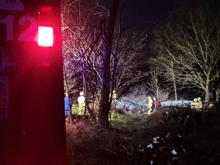Zagorelo je odpadno vejevja in hlodovine v velikosti 10 kvadratnih metrov.