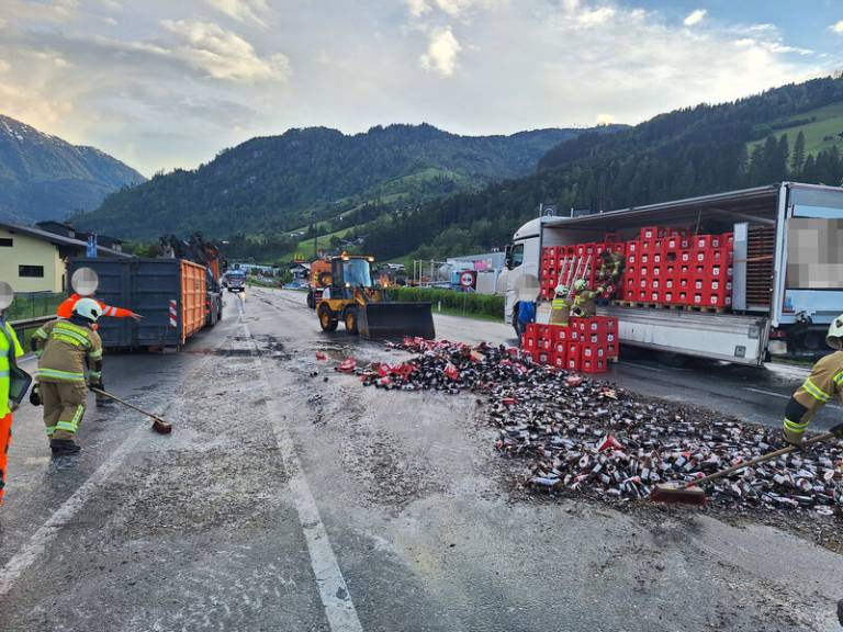 V bližini Velenja se je med prevrnjenim tovorom razbila večja količina steklenic piva.