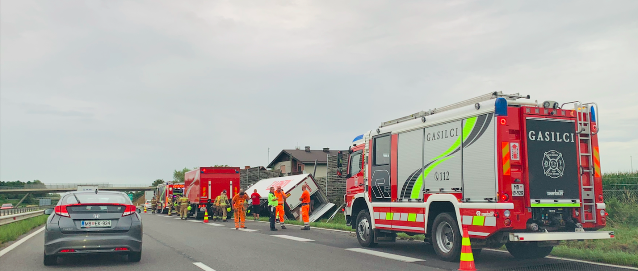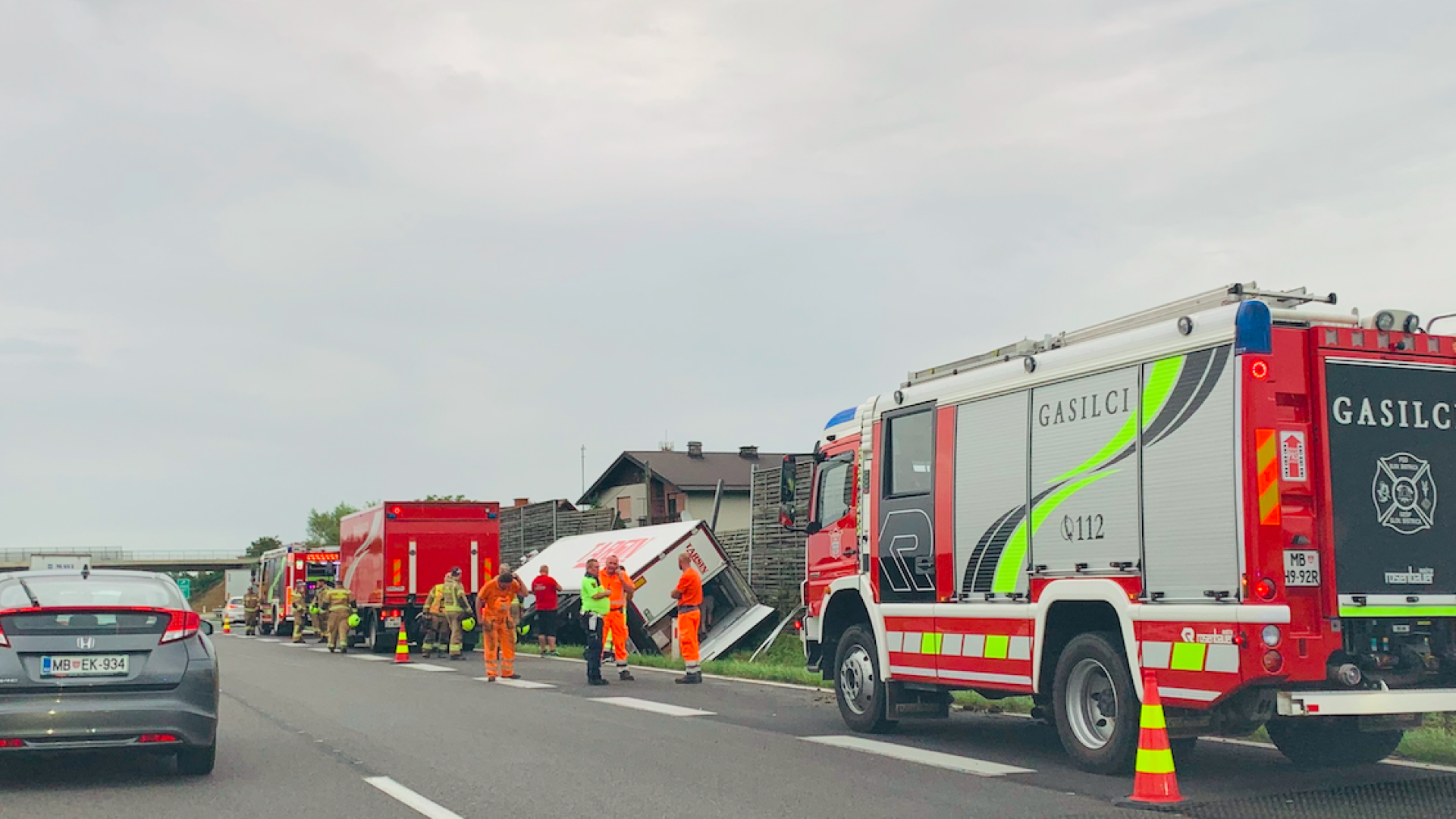 Na avtocesti se je v prometni nesreči prevrnil tovornjak, na kraju nesreče so gasilci, sporočajo bralci.