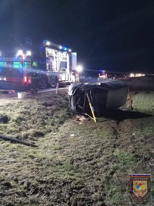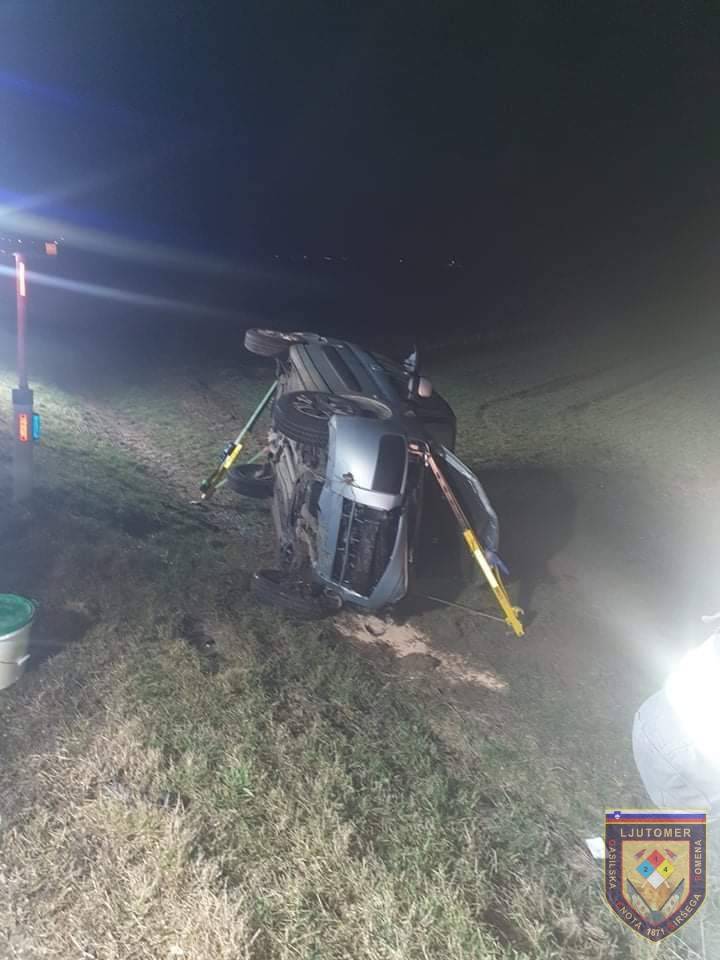 Ob 20.59 je izven naselja Boreci, občina Križevci pri Ljutomeru, osebno vozilo zdrsnilo s cestišča in obstalo na boku v obcestnem jarku. Gasilci PGD Ljutomer so zavarovali kraj dogodka, poškodovano osebo rešili iz vozila, pomagali reševalcem NMP in policiji ter osebno vozilo postavili nazaj na cestišče.