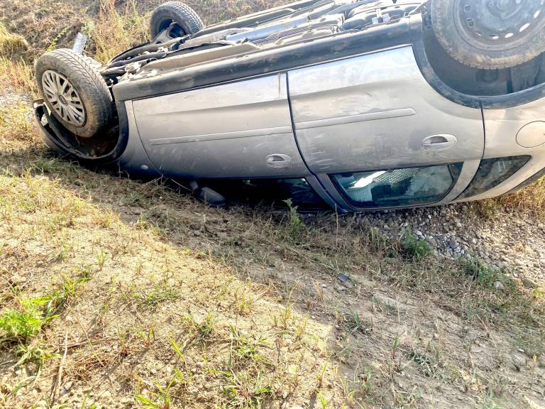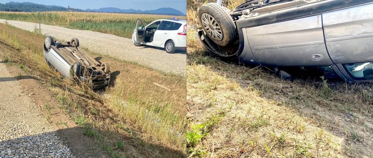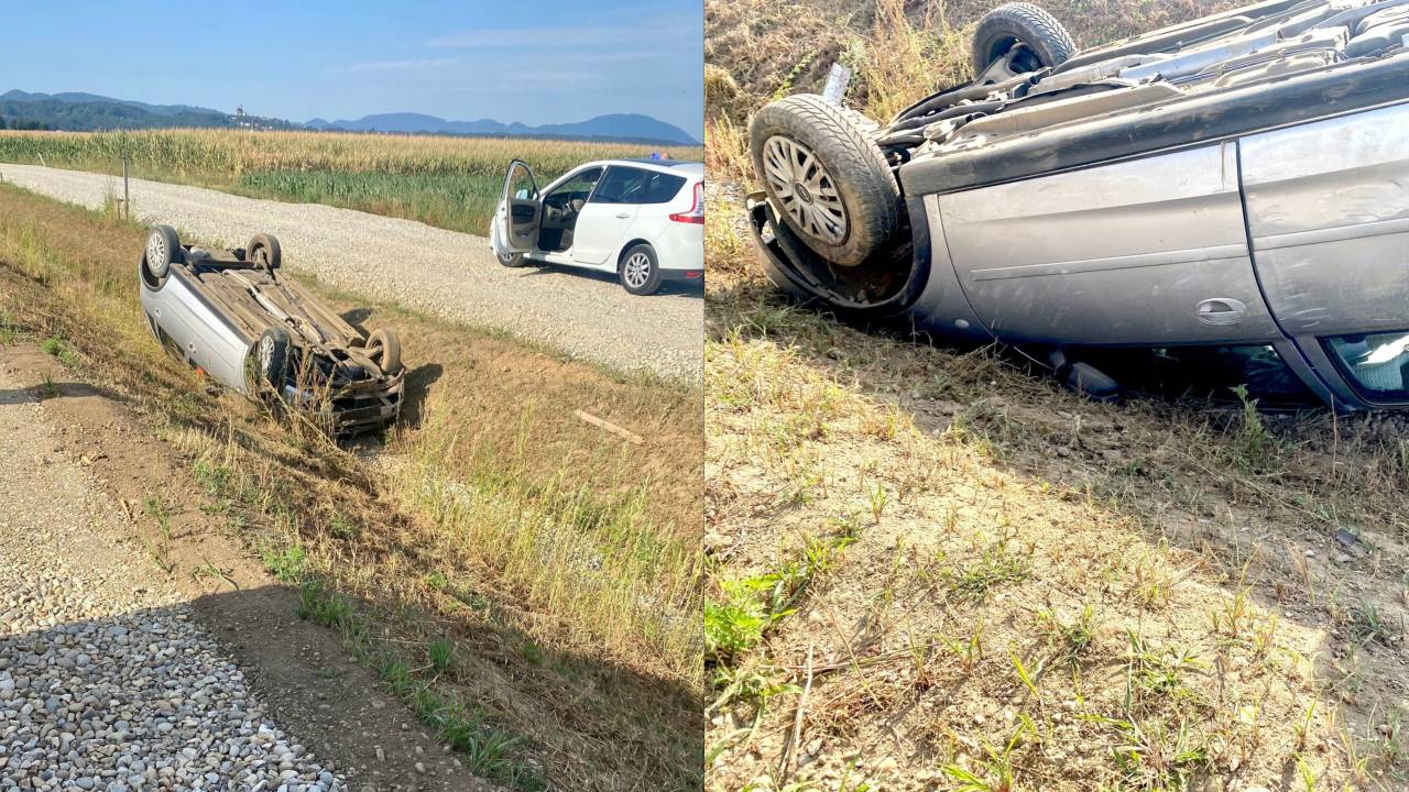 V petek je v jutranjih urah v Lovrencu na Dravskem polju, v občini Kidričevo, osebno vozilo zapeljalo s cestišča in pristalo na strehi. Gasilci Prostovoljnega gasilskega društva Ptuj so zavarovali kraj dogodka, odklopili akumulator, preprečili iztekanje motornih tekočin ter vozilo postavili na kolesa.