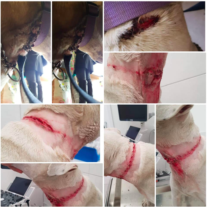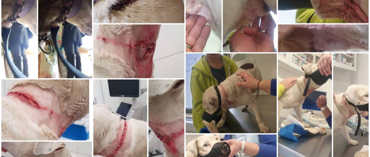 Psička je trpela neznosne muke z zrezanim vratom zaradi zatezne verige, s katero je bila privezana na minusu, na betonu in brez vode ali hrane. Ob vsem tem pa je trpela še neznosne bolečine zaradi raka.