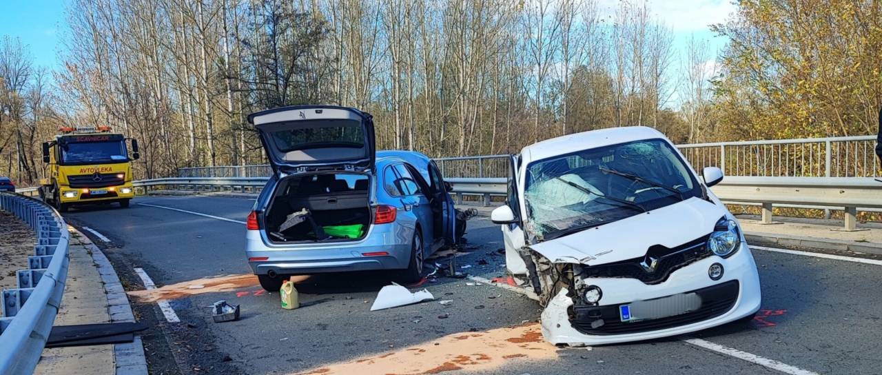 FOTO: V prometni nesreči na mostu čez Muro dve osebi poškodovani
