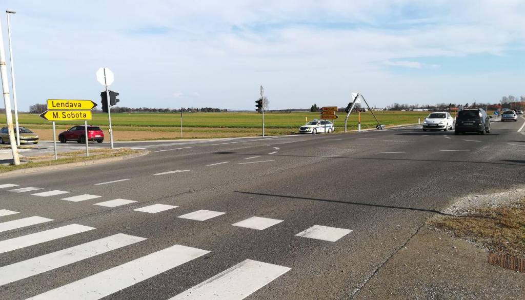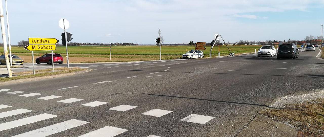 V križišču na cesti Beltinci-MS pri Bratoncih in Lipovcih je močan veter podrl semafor. Na kraj dogodka je že prispela policija.