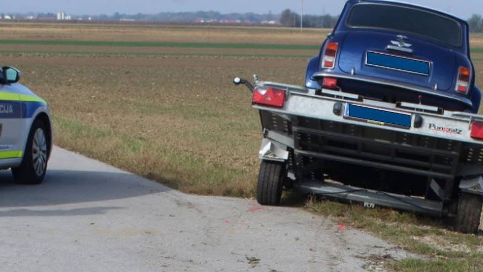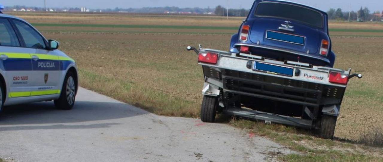 Minuli petek, malo pred 11. uro, so soboški policisti bili obveščeni, da se izven naselja Veščica, v smeri Rankovec v obcestnem jarku nahaja priklopnik z naloženim osebnim avtomobilom.