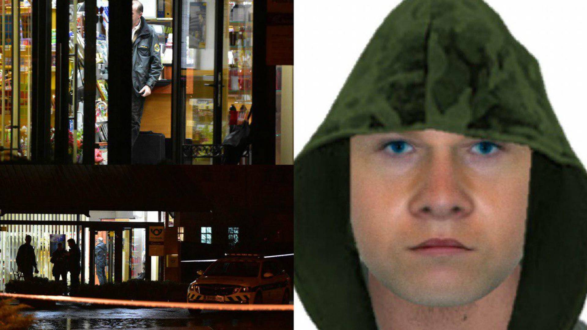 Oblečen v jakno maskirne barve s kapuco, sive hlače in obut v črne čevlje je storilec s kraja pobegnil. Zaradi sistema, ki ga je obarval je bil denar najden v bližini ropa.