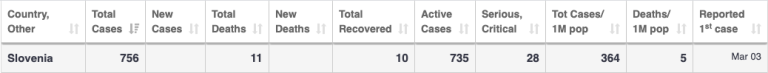 Podatek, ki ga ponuja spletna stran Worldometers.com, kjer lahko najdemo kredibilne informacije in podatke v zvezi s koronavirusom iz vsega sveta in jih citirajo tudi najuglednejši svetovni mediji, kot so Financial Times, The New York Times, Business Insider in drugi, je deset ozdravljenih ljudi v Sloveniji. Vsi ostali podatki na strani Worldometers.com glede koronavirusa v Sloveniji, torej število okuženih, število kritičnih primerov in število umrlih, držijo.