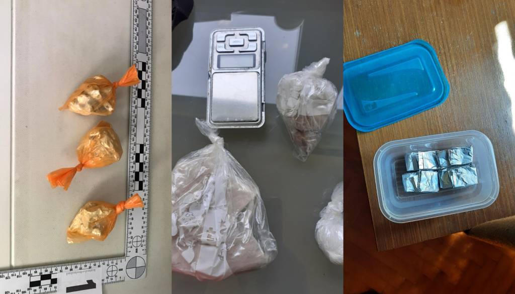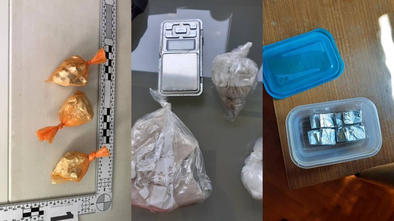 Pri hišnih preiskavah so zasegli več predmetov pomembnih za kazenski postopek med drugim tudi prepovedano drogo heroin in kokain, z dodano snovjo za mešanje in večanje volumna, pripravljeno za nadaljnjo ulično prodajo.