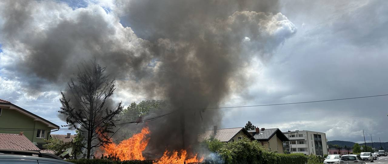 Letalo je pri padcu poškodovalo stanovanjsko stavbo, izbruhnil pa je tudi požar.