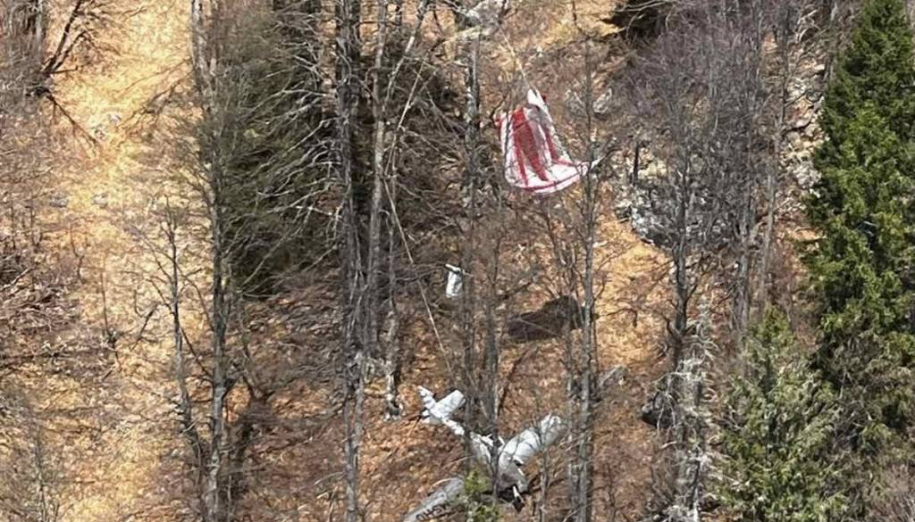 Pilota sta aktivirala reševalno padalo in zasilno pristala na pobočju nad Stožjem, kjer je letalo obstalo med drevesi.