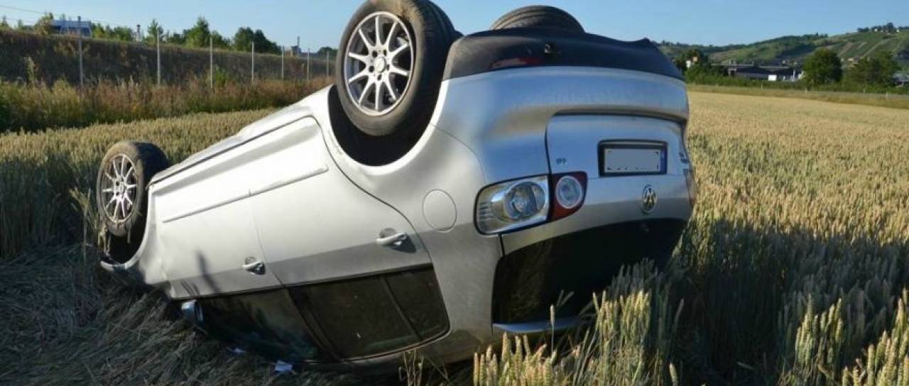 Voznik osebnega avtomobila je, da bi preprečil trčenje, zavil v desno, najprej na bankino, nato pa se je vozilo prevrnilo po brežini navzdol še pet metrov.