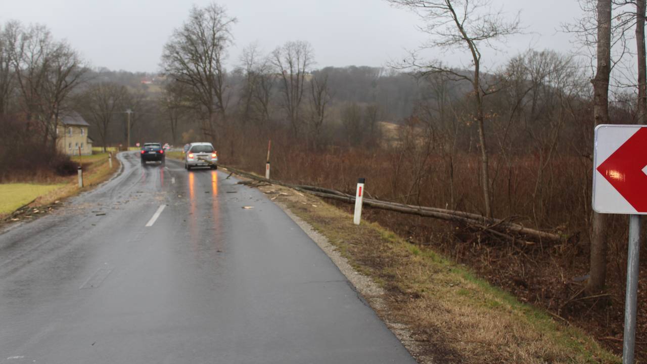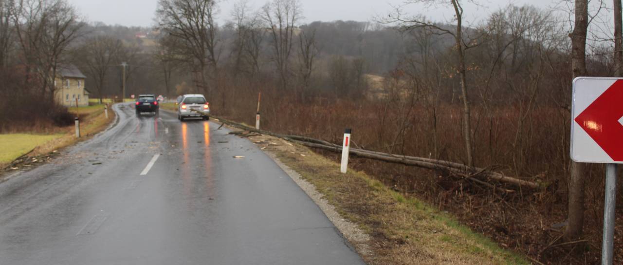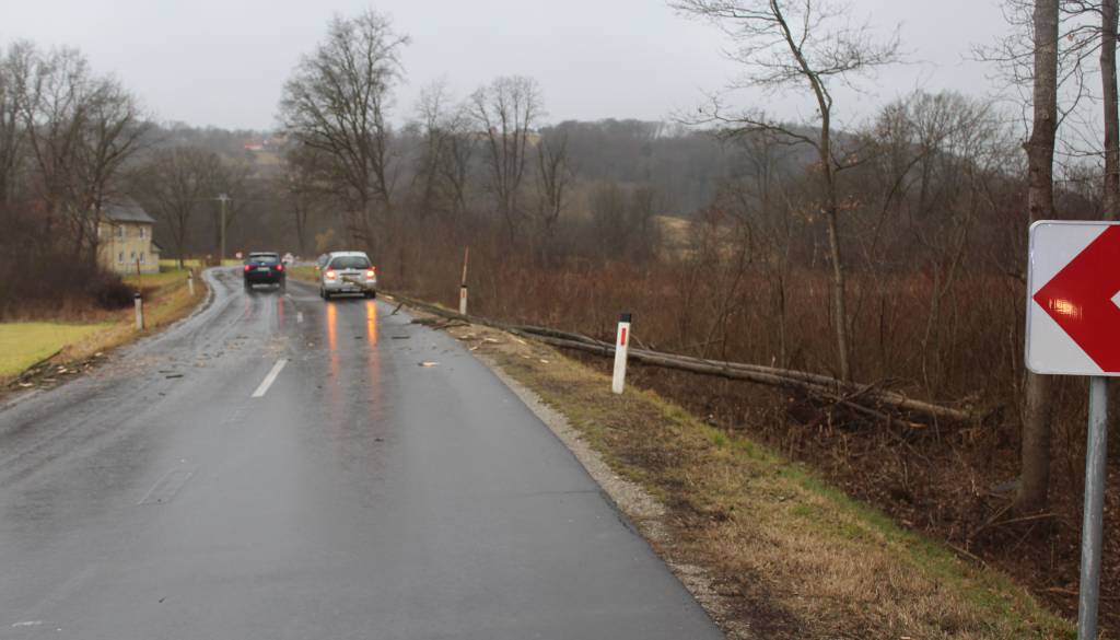 Iz Policijske uprave Murska Sobota so sporočili, da je včeraj, malo po 9. uri izven naselja Stogovci v smeri naselja Trate na cesto padlo drevo.