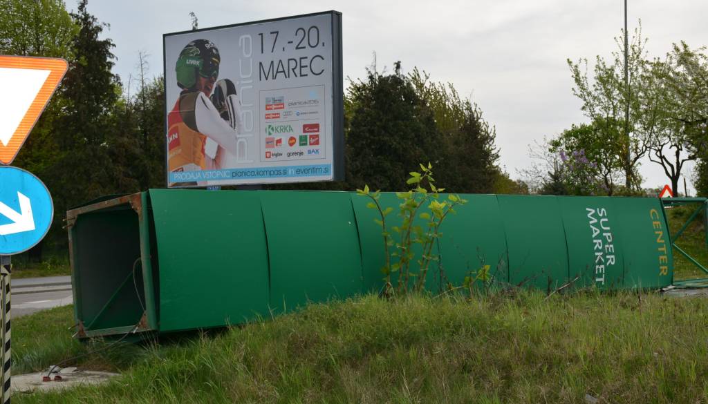 Veter na pri bencinskem servisu Mol in trgovskem središču Tuš, na Ljutomerski cesti, najprej nagnil reklamni pano omenjenega trgovskega centra, ki so ga domači gasilci odstranili in hkrati odklopili elektriko, saj je ogrožal ljudi in vozila. A to še ni vse.