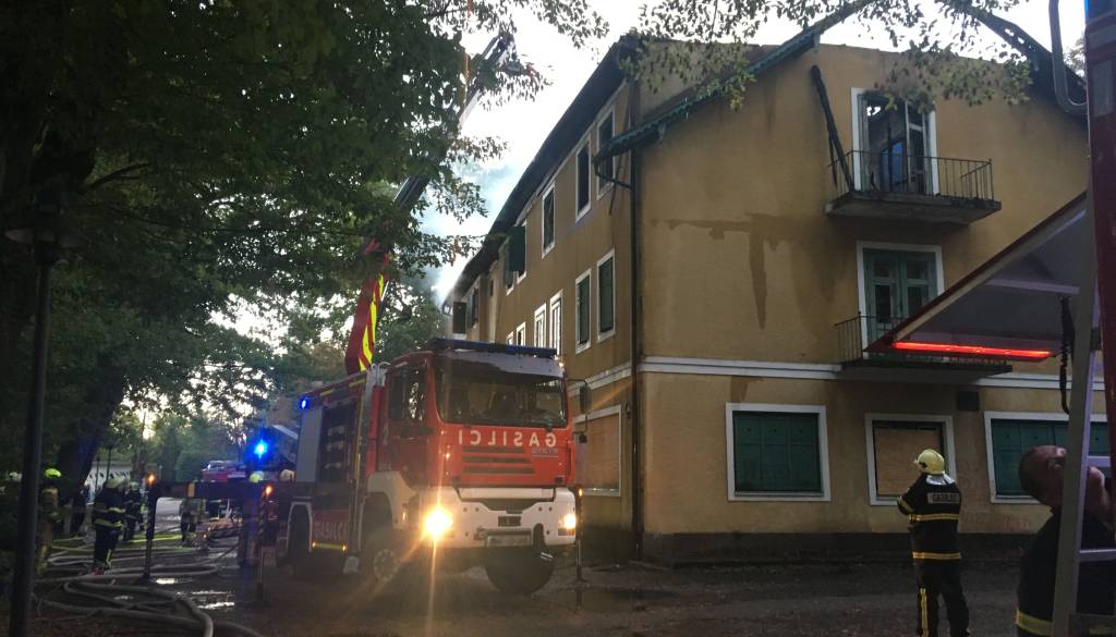 Na podstrešju Prekmurskega doma v radenskem parku je izbruhnil požar s katerim se bori več kot sto gasilcev.