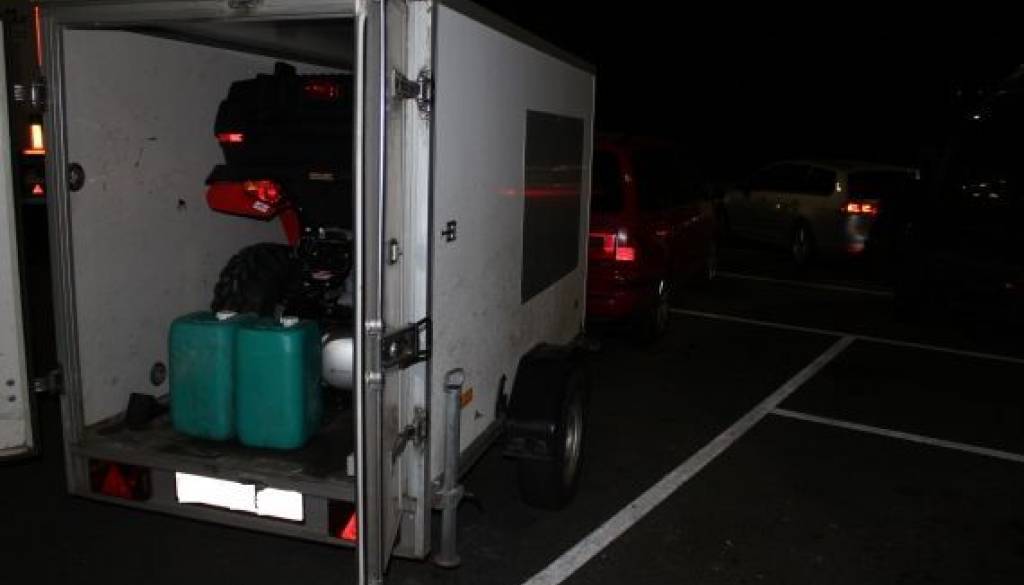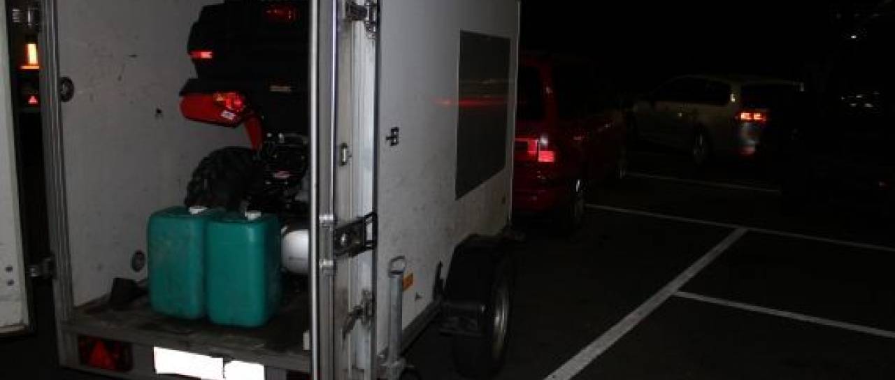 Mariborski policisti so prejšnji teden na pomurski avtocesti ustavili tri Romune, ki so očitno bežali pred švicarskimi varnostnimi organi. Prikolica, ki so jo imeli pripeto na avtomobil, je bila namreč istega dne ukradena v Švici, v notranjosti prikolice pa so našli še ukraden štirikolesnik in izvenkrmne motorje.