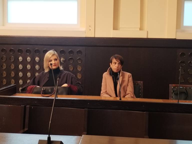 V družbi svoje zagovornice, nekdanje notranje ministrice Vesne Györkös Žnidar, je obdolžena Irena Tihec danes sedla na zatožno klop mariborskega okrožnega sodišča.