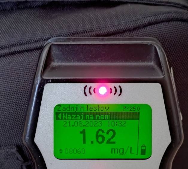 Na bližnjem avtocestnem počivališču je bil nato vozniku odrejen preizkus alkoholiziranosti, ki je pokazal kar 1,62 miligrama alkohola v litru izdihanega zraka oziroma kar 3,24 promila.