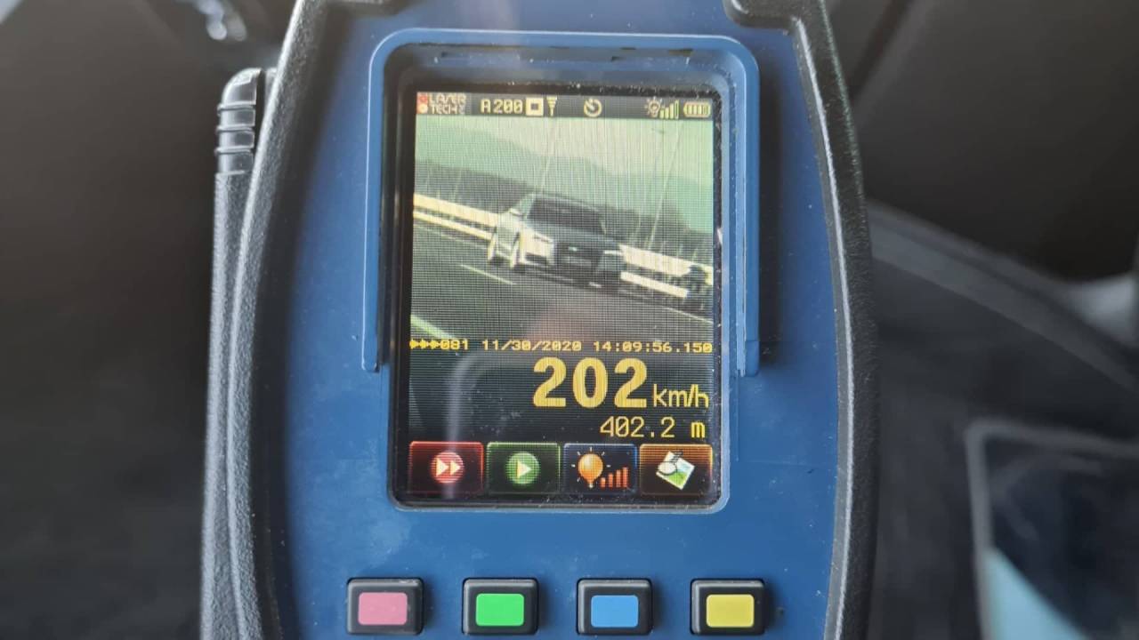 Policisti Postaje prometne policije Maribor so danes ob 14.09 na avtocesti Slivnica–Gruškovje, izven naselja Prepolje, kjer je hitrost omejena na 130 kilometrov na uro, z laserskim merilnikom hitrosti znamke Trucam ugotovili, da je 28-letni Ljutomerčan, z osebnim avtomobilom znamke Audi A6, vozil s hitrostjo 202 kilometra na uro.