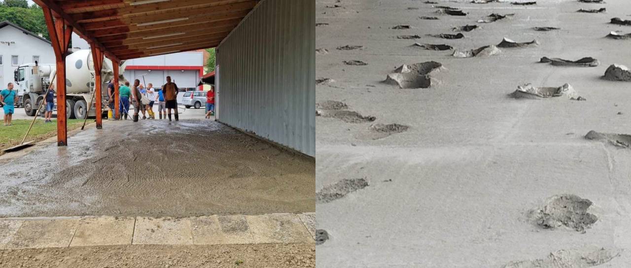 Gasilci iz Dvorjan so na družbenih omrežjih delili fotografijo opravljenega dela – betonirali so tla. Zraven pa še eno, ki razkriva, da se je po še svežem betonu nekdo sprehodil in pustil ogromne luknje.