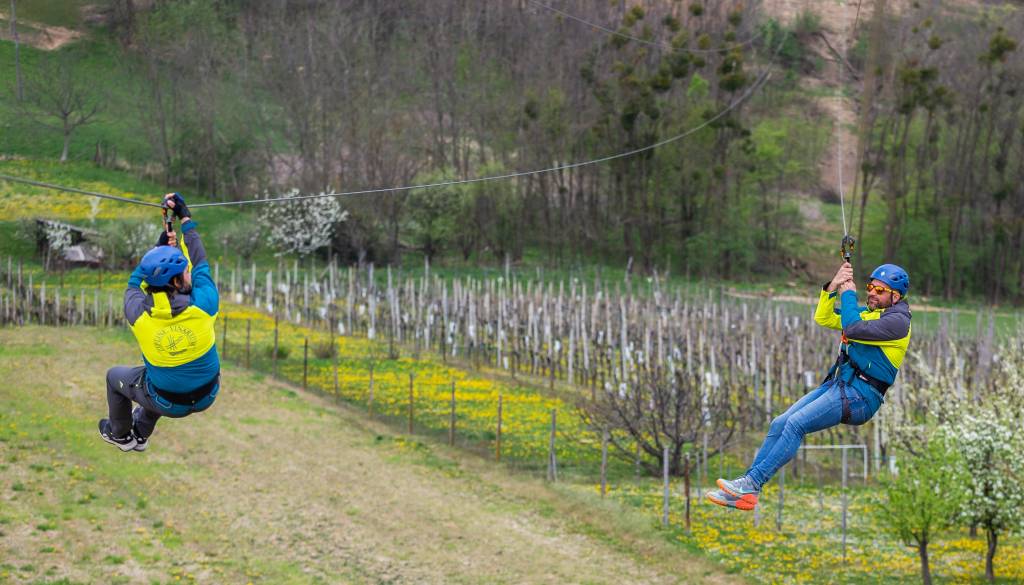 Zipline Vinarium je novost v slovenskem prostoru, saj sta z izhodiščne točke do končne točke v bližini razglednega stolpa speljani dve vzporedni jeklenici, kar omogoča sočasen spust dveh oseb.