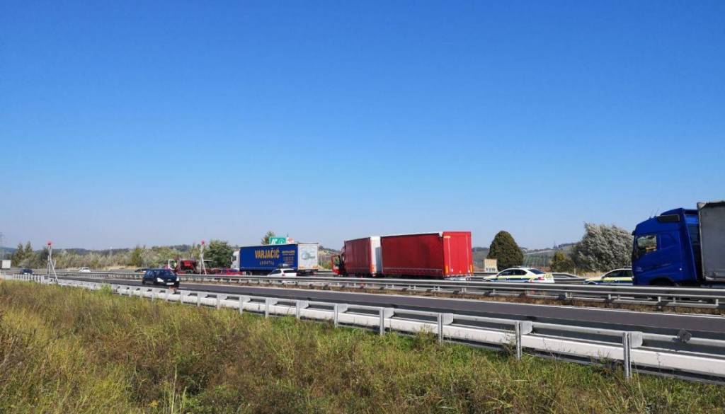 Avtocesta ni več povsem zaprta, saj že poteka promet mimo ponesrečenih treh tovornjakov.