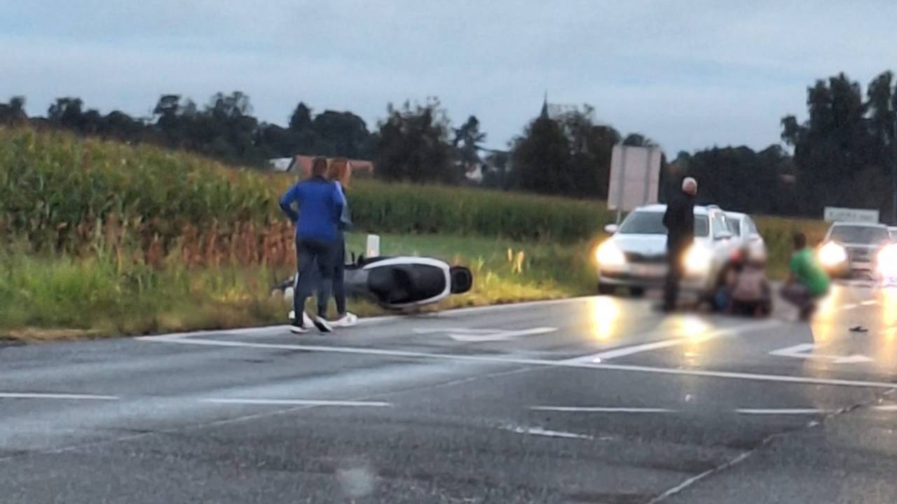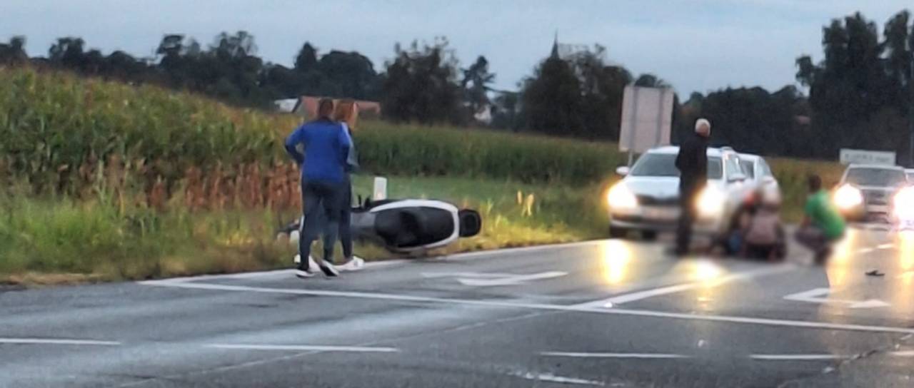 Nesreči botrovalo pretesno prehitevanje: Voznik skuterja se prestrašil in padel