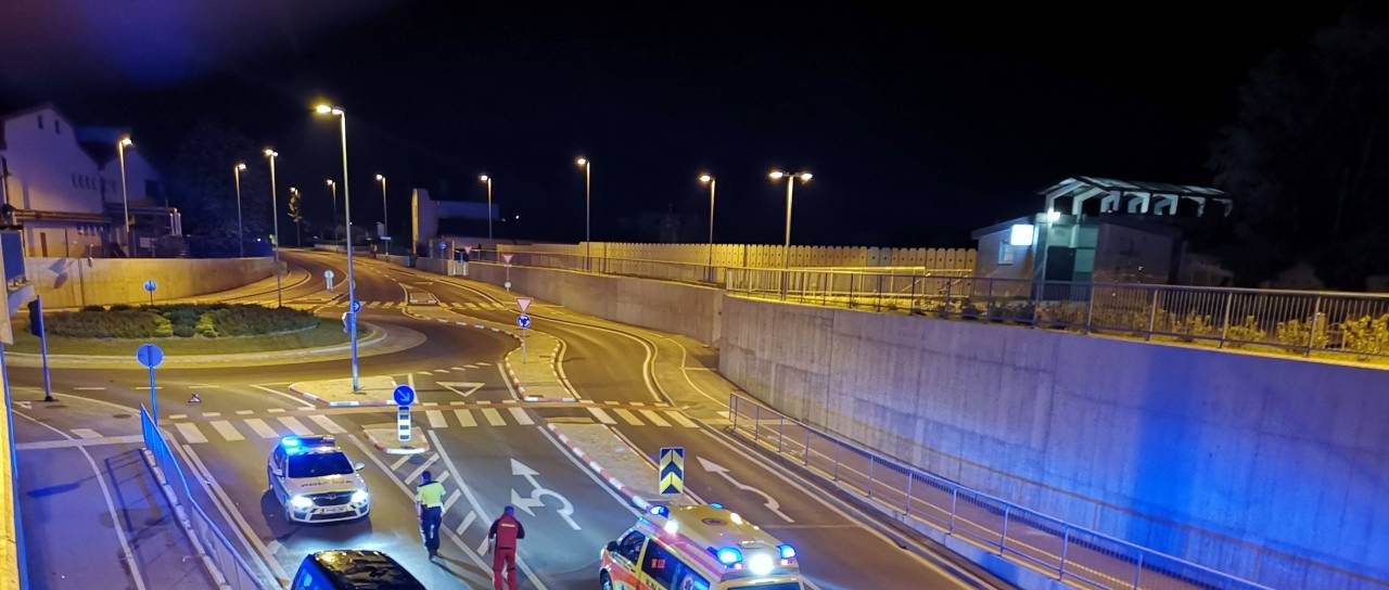 V krožišču ob pokopališču na Panonski ulici je voznik osebnega avtomobila v nočnih urah predvidoma trčil v obcestni zid.