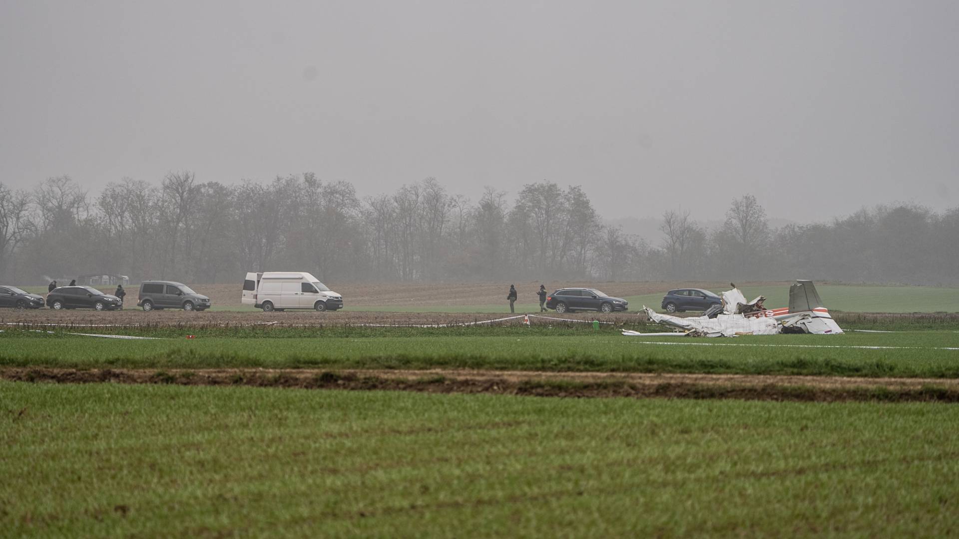 FOTO in VIDEO: Policija potrdila, v strmoglavljenem letalu poleg pilota dva potnika, na prizorišču le še manjše razbitine